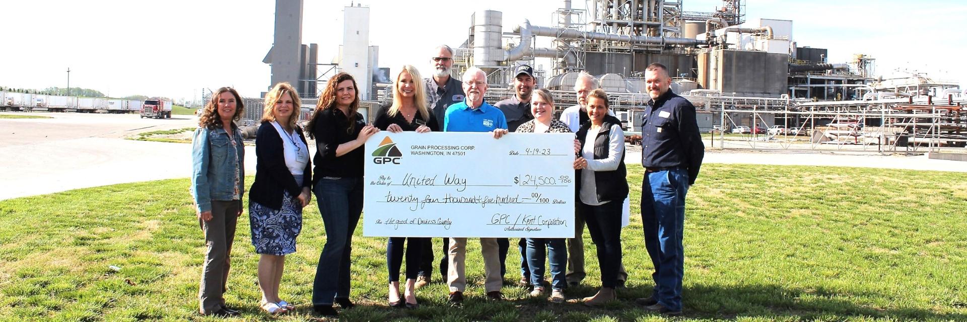 WASHINGTON, Indiana (June 5, 2023) – Grain Processing Corporation (GPC), a KENT Corporation family business, has been a long-time partner to United Way of Daviess County in Washington, Indiana, and last month the GPC Washington team was recognized as the top donor in the county.
